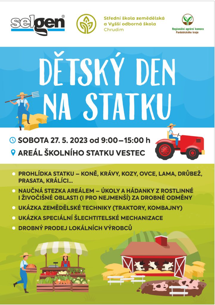 Dětský den již tuto sobotu 27.5.2023 od 9 – 15 hodin na školním statku ve Vestci u Chrudimi