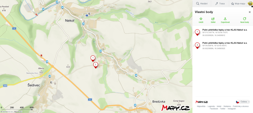 Pole v Nekoři – bude značeno ze silnice.